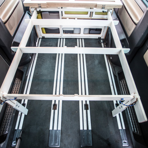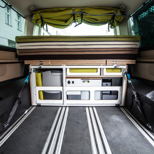 Konfigurátor vestavbyObsahuje výsuvný prostor pro vyjímatelné moduly vařiče a vody, dále prostor primárně určený pro lednici nebo chladící tašku. Další úložné prostory závisí na velikosti vozu.
