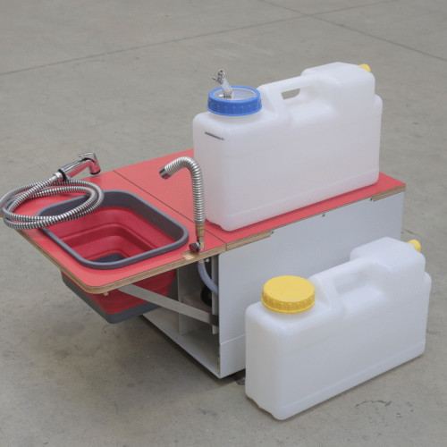 Je tvořen hliníkovou konstrukcí s nerezovými částmi a z březové překližky s povrchem HPL. Obsahuje skládací umyvadlo bez odtoku, dva dvanáctilitrové plastové kanystry, externí čerpadlo na vodu, jeden plastový šuplík sloužící k uskladnění věcí, taštičku na hygienické potřeby, 150 cm dlouhou sprchovou hadici a umyvadlovou baterii, které se nasazují na nástrčnou rychlospojku. Ovládaní probíhá pomocí kohoutku.